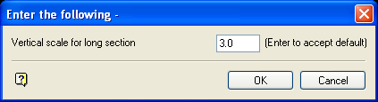 Enter a scale for the long section. The vertical scale is important for maintaining a fixed ratio between chainage and elevation when producing plots. The default scale is '1.00'.