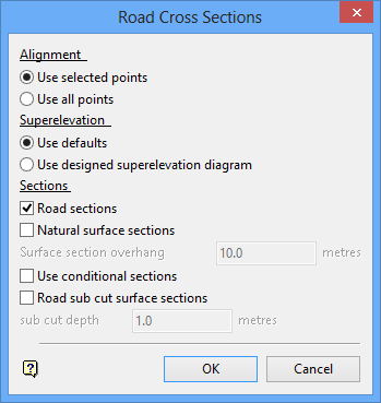 Select this check box to generate the road sections. They are placed in their own layer (<design_name>.D).