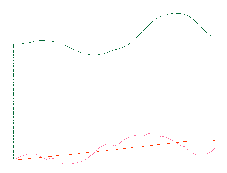If a mass haul diagram was requested, you are transferred to the Long Section window in which the diagram is generated. The object name of the diagram is MASSHAUL and this object is stored in a layer named <design_name>.M.