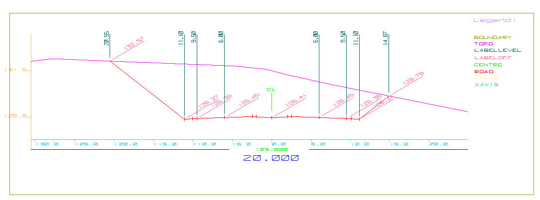 Supply a layer name for the cross section strings and labels. The cross section strings and labels are then generated., and stored in the specified layer. The strings and labels are considered text objects, and are allocated different feature codes so that they can be easily selected for deletion. Use the Design > Text Edit > Delete Object option to delete text objects.