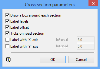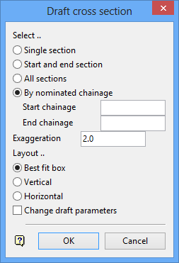 The layout options are only applicable if more than one cross section is to be generated. Multiple cross sections can be plotted horizontally alongside each other, vertically on top of each other or best fit. The latter option will arrange the sections into a rectangular ares.