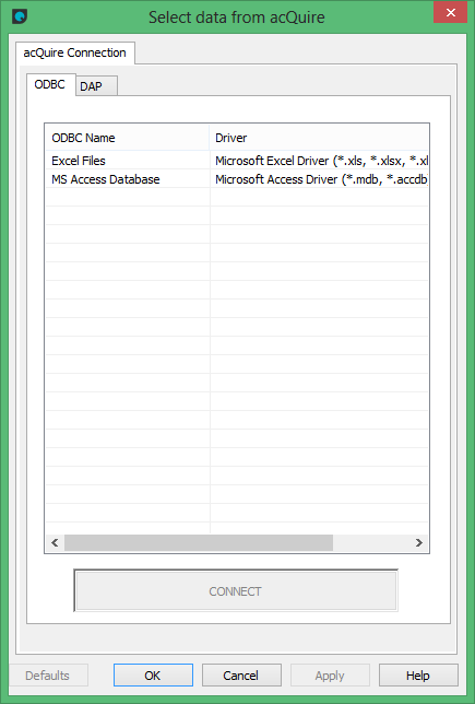 On the File menu, click AcQuire to display the Setup acQuire database panel.