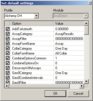 If you have defined a Profile (acQuire, Manage, Default Settings), you can apply a profile or template to the selection of the data. The profile has all or some of the settings that will apply to this and other tabs in the dialog. Select the appropriate profile from the drop-down list and the settings will apply. Deselect any of the options that you do not want to include.