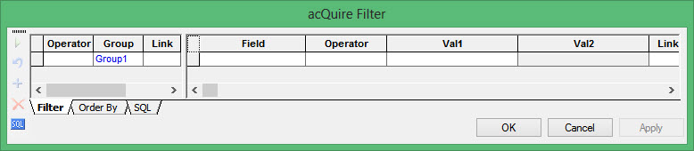 Select this button to define a filter to subset the records that will be included in the data set. The acQuire Filter panel is then displayed.