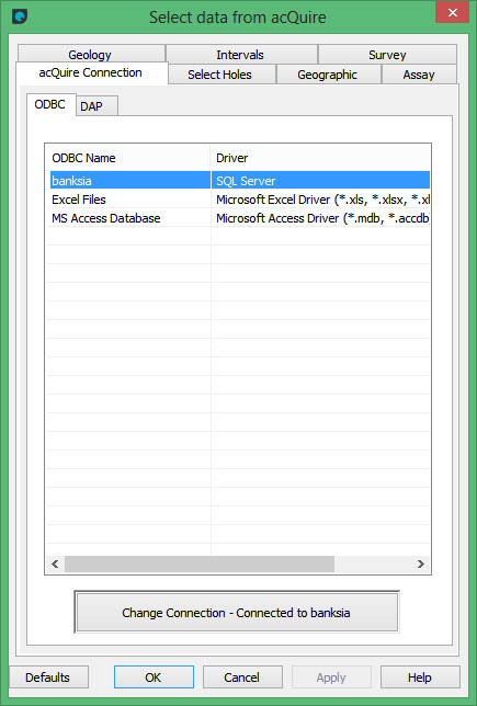 Use the acQuire option to setup a link to an acQuire drillhole database which can then be accessed directly in Vulcan. This database will be linked through the acQuireDirect API. The current API supplied is read-only and does not allow writing back to the acQuire database directly.
