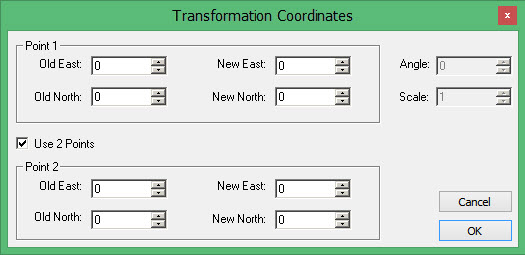 - 1 Point. This incorporates defining an angle and scale that is used to transform the coordinates. Define the points in terms of the current points (old East and North) and the destination set (new East and North).