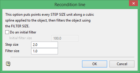 Enter the filter size. The final object is filtered using this value. A point will be removed if the perpendicular distance between the point and a line joining the two points either side of this point is less than this value.