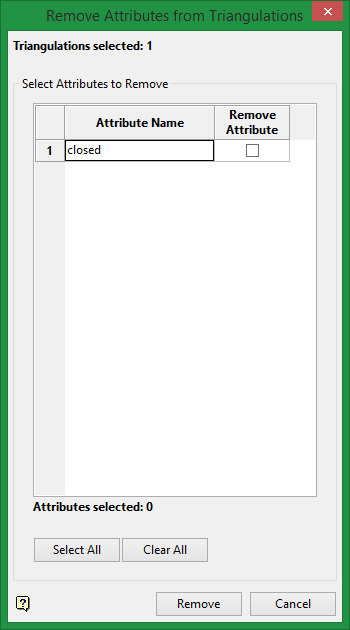 On the Model menu, point to Triangle Attributes, then click Remove Attributes to display the follow interface.