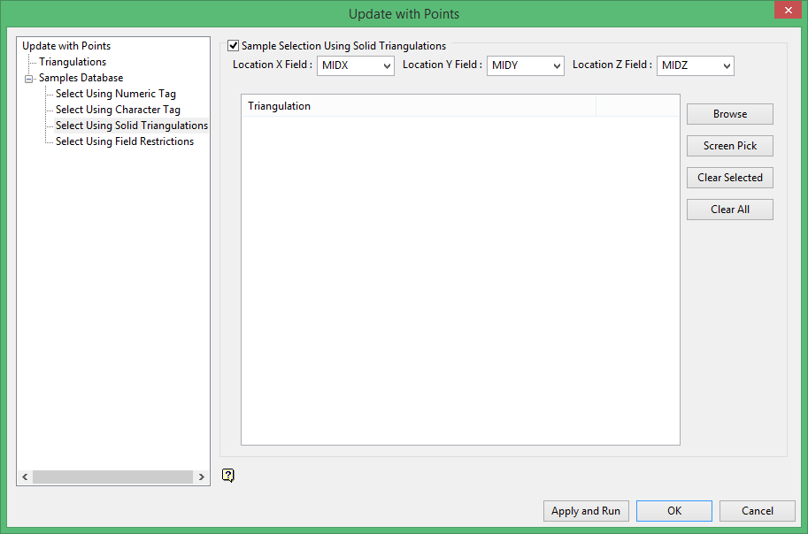 Click Screen Pick to select a triangulation that is currently loaded on the screen.