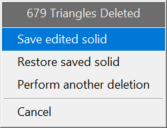 Once the triangles are deleted, you will be prompted to save the edited solid, restore back to the saved solid, or perform another deletion.