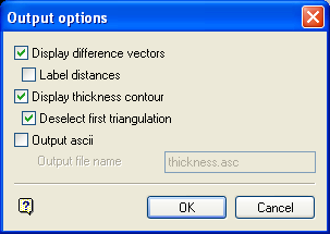 A distance vector will be created from each point of the first triangulation to the closest point on the second triangulation. To ensure that the thickness is calculated accurately, extra points may be added to the first triangulation (distance vectors will also be created for these points). These points are created solely for this option and are not permanently added to the triangulation.