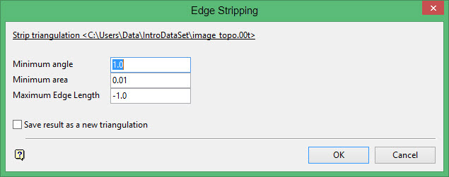 Enter the minimum allowable area for triangles. All triangles with an area less than this minimum are removed. Setting this to 0 (zero) will mean that triangles are not stripped according to area.