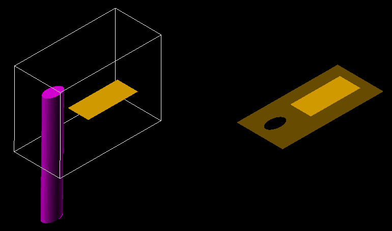 ExampleIn the following diagrams, the nominated triangulation surface has intersected a cylindrical solid. The translucent areas in the following diagrams represent the expanded surface triangulation.