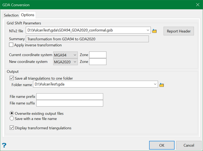 The GDA Conversion option converts coordinates of selected triangulations from: