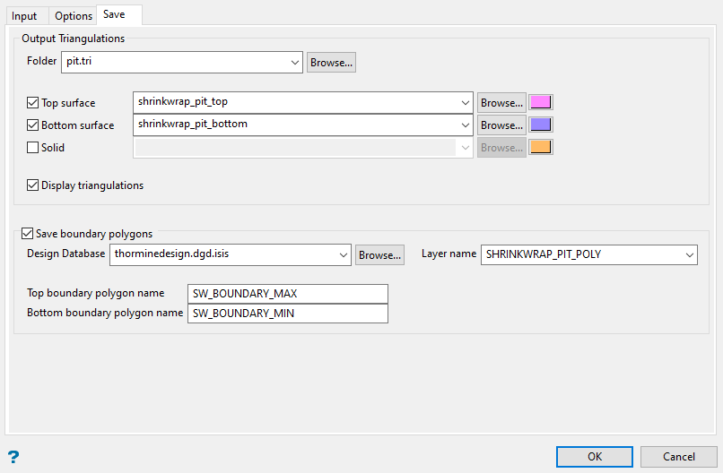 The Output Triangulations section allows you to enter the output triangulations names and storage location.