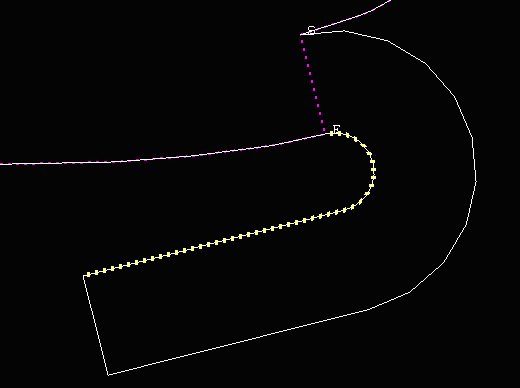 Choosing not to use this option on the first polygon and using the Smooth wall check box (on the Road Parameters panel) instead could result in the following.
