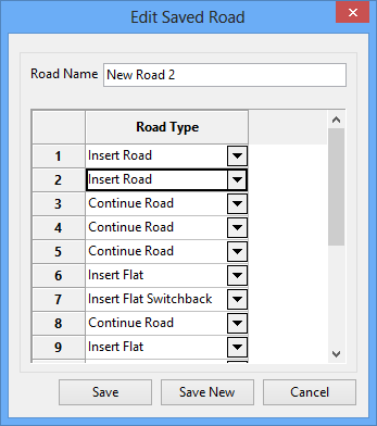 Clicking Save New saves a new road type. If a road type already exists with the same name, a second version is created and listed in numerical order.