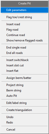Note: Â This is available only if Highwall has been loaded in Road Parameters (via Edit Parameters in Create Pit context menu.