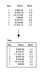 The condition fields allow you to select which rows to include in the table based on whether certain column conditions are met. All columns with data can be used when defining a condition. The following example shows a condition that will select only those rows with a copper grade between 1.4 and 6.0: