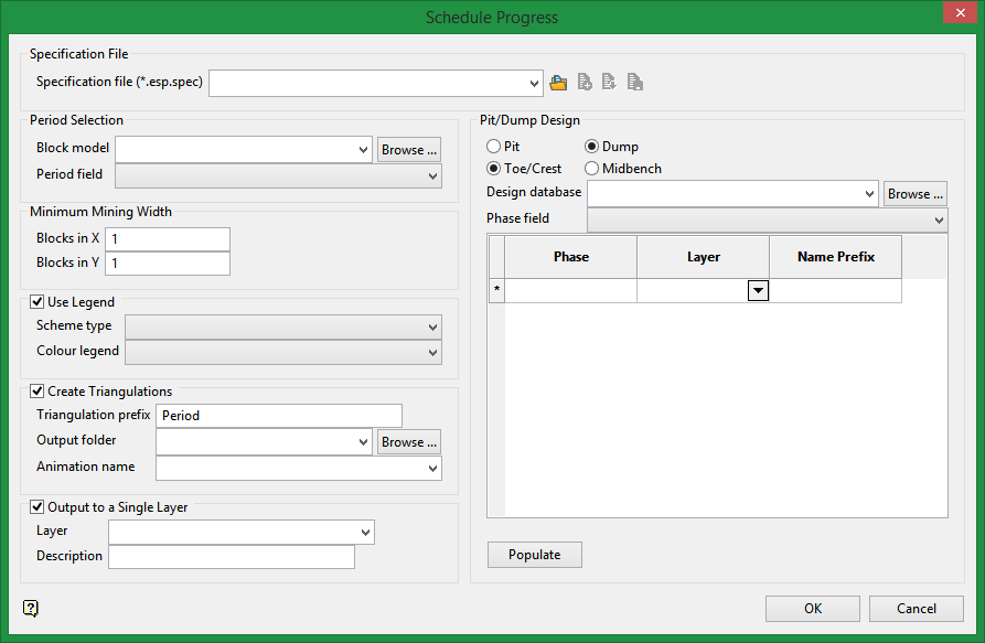 On the Open Pit menu, point to Evolution, the click Schedule Progress to display the following interface.