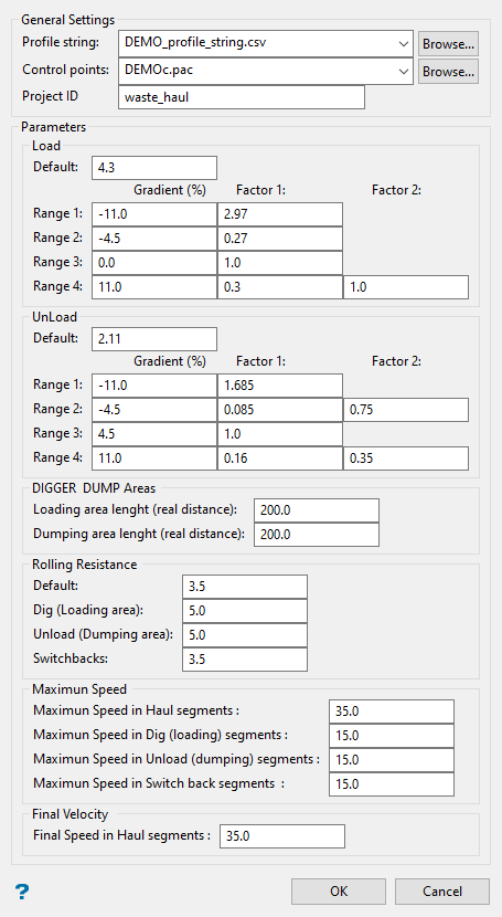 Layer Purpose Inpit Section of road used to enter the pit area. Expit Section of road used to exit the pit area. Load points Point showing location where trucks are loaded. This is the start of the route. Unload points Point showing location where trucks are dumped. This is the end of the route. Control points These indicate the zones corresponding to gear changes, at the beginning of the route, switchbacks, and before reaching an unloading zone. -