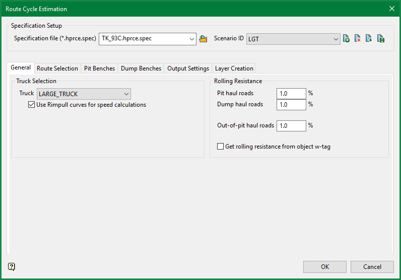 Note If you are running the Route Cycle Estimation for a route flagged as ‘Ore' the panel for Dump Benches will be disabled since these are no dump benches in an ore route.