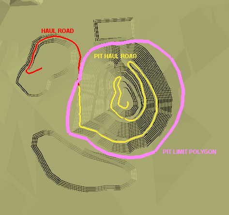 Diagram 3 - Pit Limit Polygon, Haul Road and Pit Haul Road