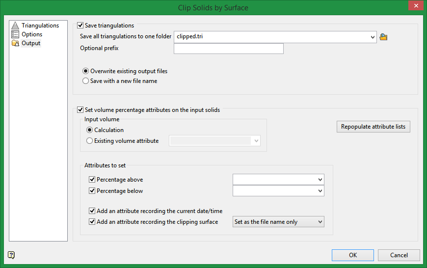 Select an output folder for the clipped triangulations. Â You may keep the default folder created automatically or enter a name of your own with the .tri file extension.