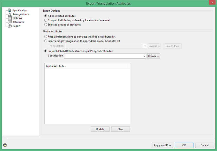 Select this option to generate a list of attributes based on all triangulations currently loaded.