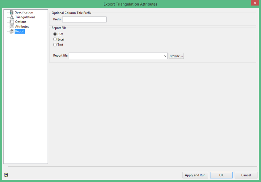 Attributes of the selected triangulations are saved in a report file, one triangulation per row.
