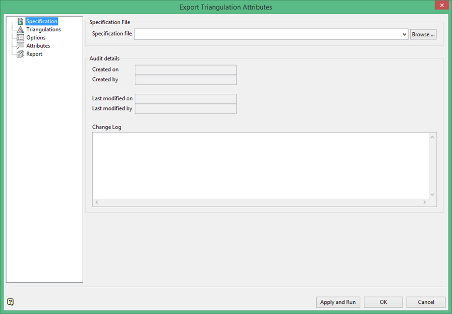 Use the drop-down list to select an existing specification file, or enter a new filename.  An extension will automatically be added to the filename in the format of  < filename.TRI_ATTR_EXPORT_SPEC >.
