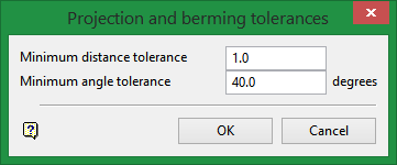 The tolerances can be applied when projecting batters or berms in the Project, Berm string and Auto Pit options by checking the Check string for cross-overs check box in the appropriate panel of those options.