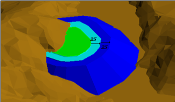 The resulting tonnage/volume displays in the Report Window. With this information, you can either modify the parameters or the polygon shape interactively until the dump is properly dimensioned.