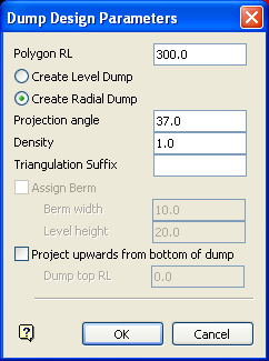 Select this option to create a radial dump. If this option is selected, then the Dump Design Modules panel displays once the Dump Design Parameters panel has been completed.