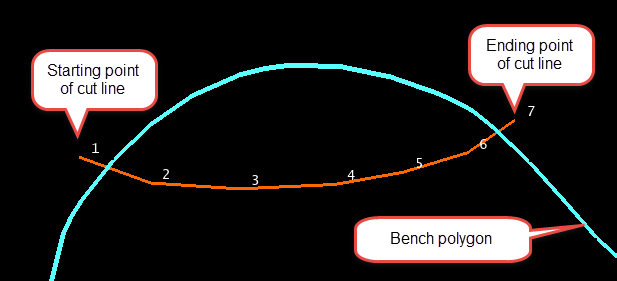 Use this option to create a cut inside of a bench. The polygon is digitised fully inside of the bench.