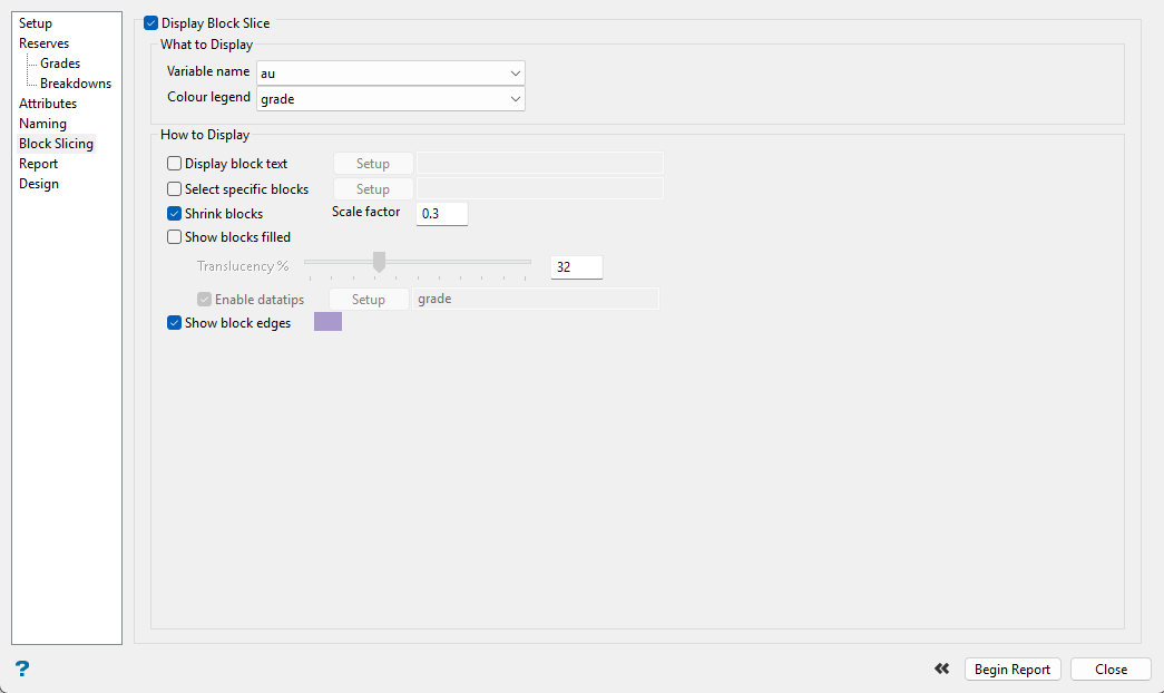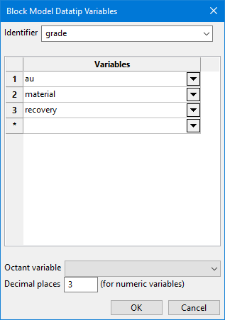 Select one or more Grade variablesfrom the block model.