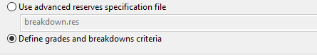 Use advanced reserves specification file - This method allows you to import a specification file that has been created using theAdvanced Reserves Editor.