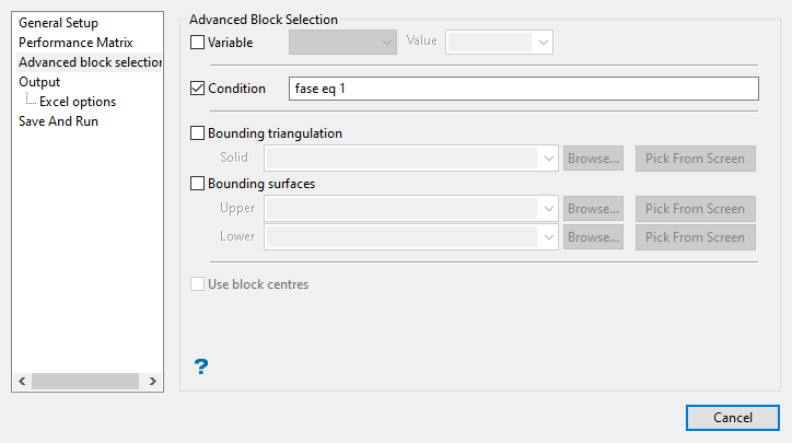 180', and the break point is '50', then Vulcan will assign a value of 210 to the nominated performance variable.Advanced block selection