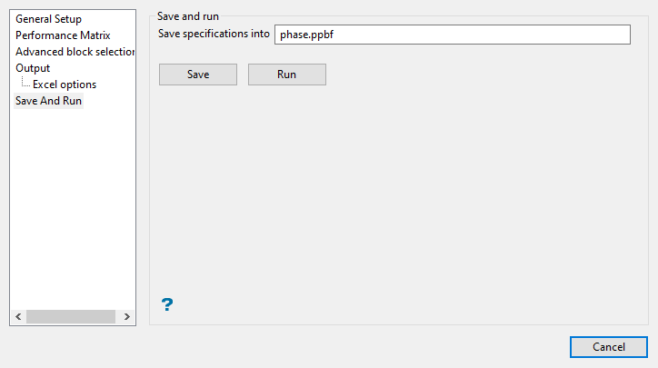 Note: Â Selecting the Run option will also save the specification to the specification file.
