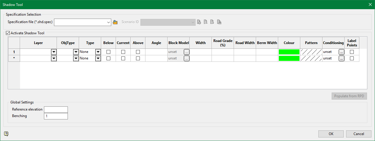 On the Open Pit menu, point to Open Cut Design, then click Shadow Tool to display the following interface.