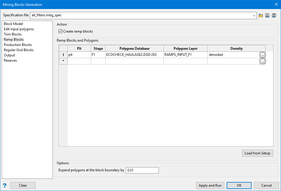 Ramp blocks can be created by cutting benches with the ramp polygons defined during setup.