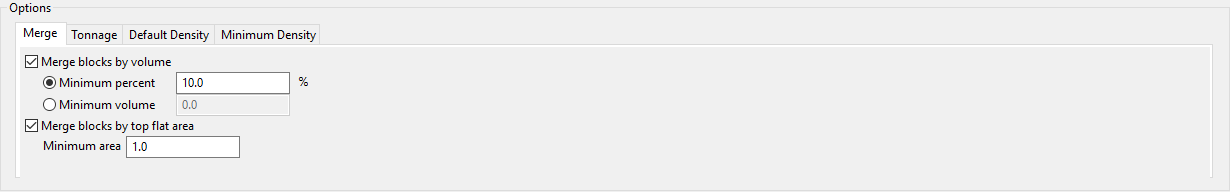 - Merge blocks by top flat area - Use this option to merge blocks, whose top flat area is less than the specified value, to the adjacent blocks.