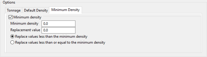 Use this option to replace the density block model variable with default values. Enter a default density value instead of calculating the value.
