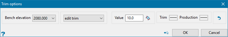 You can delete rows from the Benches table on the Trim Blocks and Polygons subpanel, but to maintain data integrity, rows should not be added individually. It is recommended to use the Load from Setup Button to obtain the complete list of bench RLs.