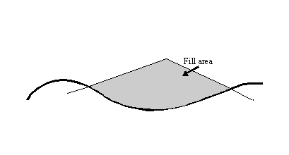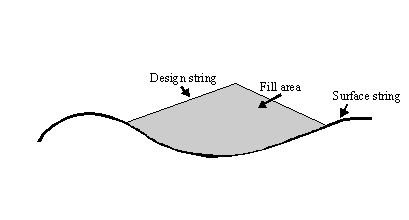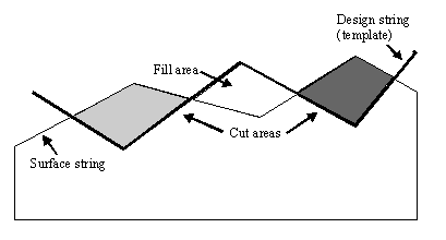 The Cut & Fill option allows cut and fill polygons to be generated between the template (refer to the Template option) and a chosen line string. The polygons are defined as being any enclosed polygon formed through the intersection of the template and the chosen line string.