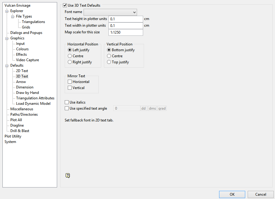 The 3D text defaults will be stored in the <proj>envis.defaults and vulcan.prefs files.