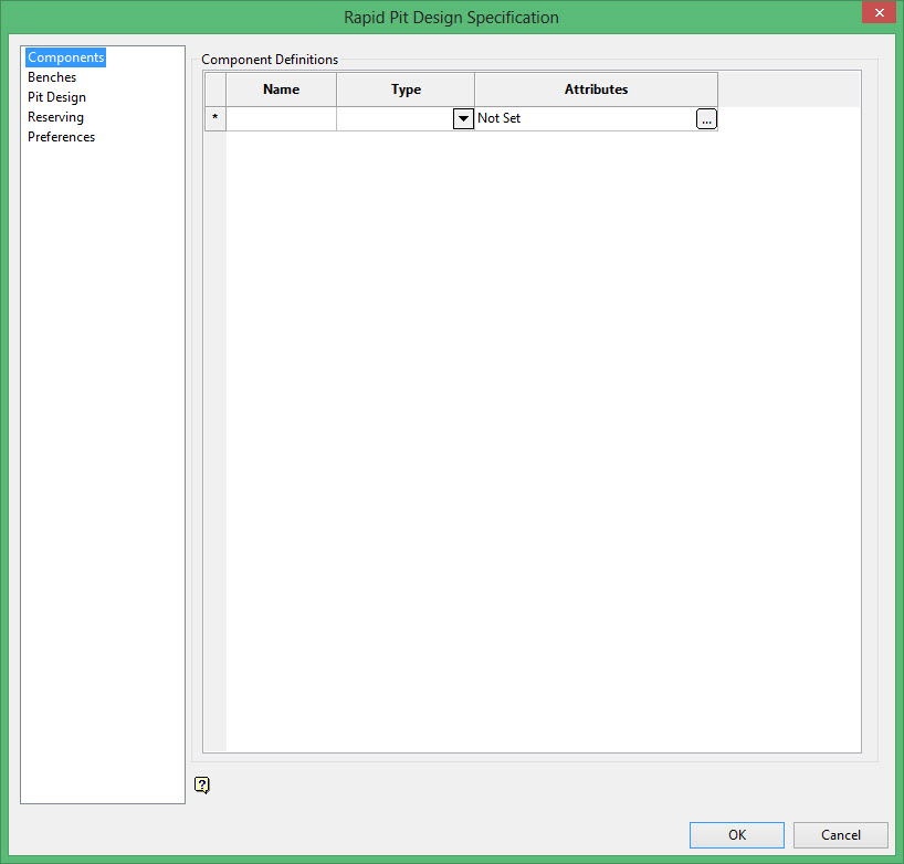 Select this check box to make the component visible inside of Rapid Pit Design. This can be toggled using the Properties window .