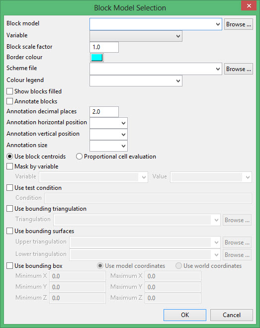 Use bounding box (block model coordinates)