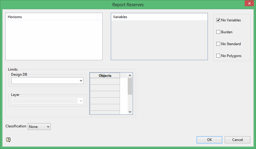 Note: Â In order for the classifications option to run, the.map files generated through the modelling process must be located within the current working directory. These files will be used to determine the distances of the reserves from the drillholes.