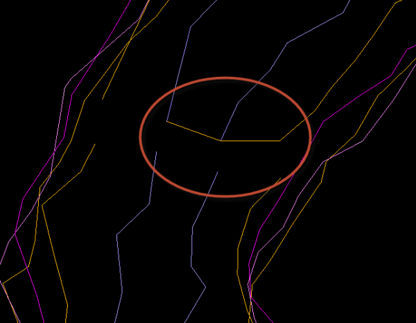 The Create Survey Triangulation function requires that an object describes a single-connected drive. For this reason, all pillar objects in a multi-connected drive must be separated into individual objects before running this function. Follow these steps to divide a multi-connected object into multiple single-connected objects for processing by the Create Survey Triangulation tool.